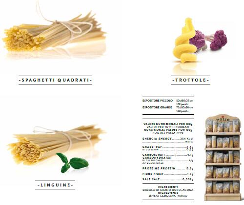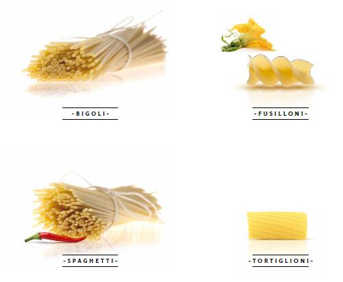 我們是意大利本地的食品廠商,主要生產(chǎn)意大利面,我們所有的用料都是選取意大利本地的面粉、意大利的水。我們有不同造型的意大利面。