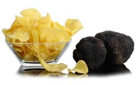 我們的薯片是由馬鈴薯和新鮮黑松露制作而成。為了突出產(chǎn)品的風味,我們采用手工制作,低溫,低油。傳統(tǒng)薯片的油炸溫度高達170℃,而我們的產(chǎn)品則是在120℃,這樣更能保留薯片的風味和提供酥脆度。