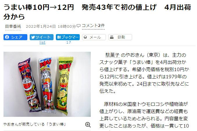 【亞洲】因原材料等成本升高 日本超人氣零食42年來漲價
