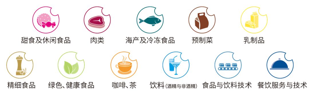 甜食及休閑食品 / 肉類 / 海產及冷凍食品 / 預制菜 / 乳制品 / 精細食品 / 綠色、健康食品 / 咖啡、茶 / 飲料(酒精與非酒精) / 食品與飲料技術 / 餐飲服務與技術