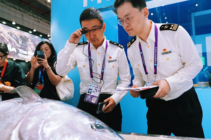 進(jìn)博會(huì)展會(huì)期間,上海海關(guān)通過移動(dòng)巡館設(shè)備和AR眼鏡,實(shí)現(xiàn)對(duì)馬耳他金槍魚等參展農(nóng)食產(chǎn)品原產(chǎn)國(guó)家和地區(qū)準(zhǔn)入情況的自動(dòng)甄別,堅(jiān)持科技賦能,借助“進(jìn)博慧展”系統(tǒng),對(duì)進(jìn)境展品進(jìn)行全鏈條數(shù)字化管理,提升監(jiān)管能力和水平。