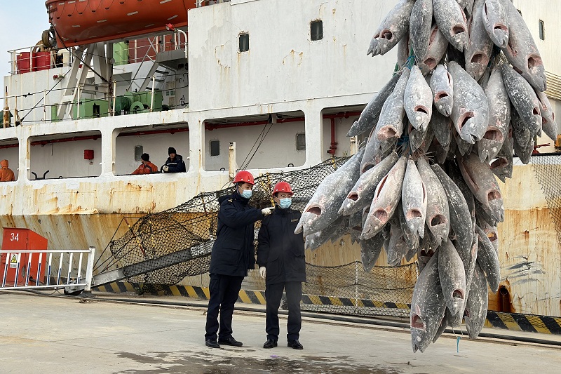 2月18日至20日,在青島海關(guān)所屬榮成海關(guān)監(jiān)管下,3艘遠(yuǎn)洋漁船在榮成石島港完成卸載,共240噸金槍魚辦結(jié)通關(guān)監(jiān)管手續(xù)后入境。這也是今年榮成石島口岸首次進(jìn)口遠(yuǎn)洋捕撈金槍魚。
