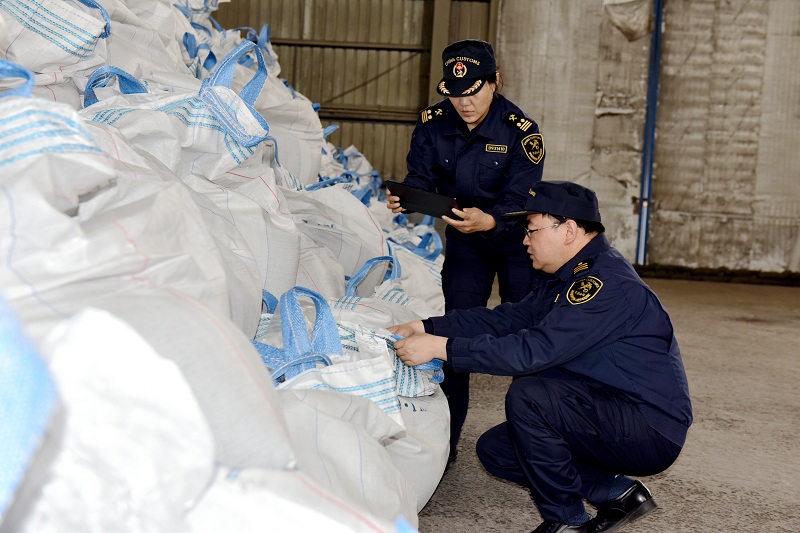 圖為:關員對進口化肥進行現場監管 郭強/攝