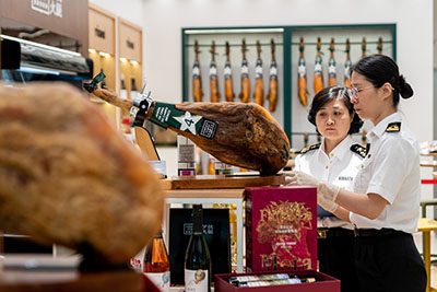 “此次在深圳寶安國際機(jī)場(chǎng)舉行的‘2024年中國(深圳)—西班牙(巴塞羅那)經(jīng)貿(mào)文化合作交流活動(dòng)’籌備時(shí)間很緊,深圳海關(guān)以專業(yè)的食品安全知識(shí),為我們提供了專業(yè)指導(dǎo)。同時(shí),還為我們開通‘綠色通道’,加急辦理國境口岸衛(wèi)生許可證,確保西班牙火腿如期合規(guī)進(jìn)駐深圳機(jī)場(chǎng)口岸。”西班牙深圳總商會(huì)經(jīng)理張魯介紹道。