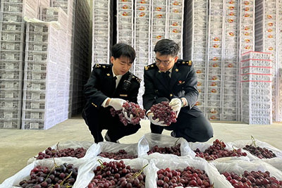 圖為:關員對出口鮮葡萄進行現場查驗 武思雨/攝