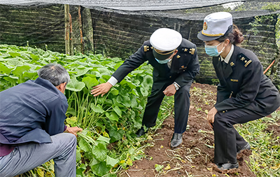 圖為:關員在山葵種植基地對山葵開展日常核查? 李柱/攝