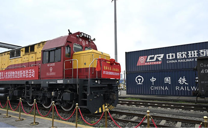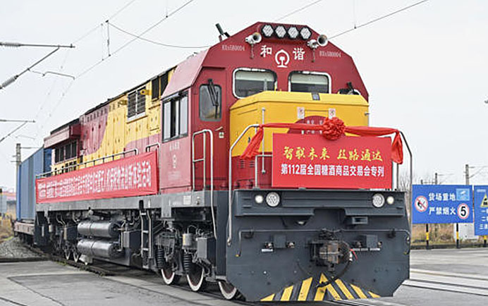 隨后,伴隨汽笛長鳴,一列從荷蘭蒂爾堡出發滿載德國葡萄酒、法國奶酪、比利時巧克力等進口糖酒商品的“糖酒會專列”緩緩駛入成都鐵路集裝箱中心站。與去年首發專列“站到站”運輸模式不同,此次專列以“高效、穩定、低成本”全冷鏈運輸的物流優勢為海外展商提供“門到門”全鏈條服務,實現從歐洲工廠至糖酒會展場全程運輸無縫銜接,助力展商“零延時”參展。