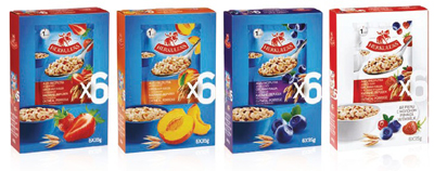 口味:野莓牛奶速溶燕麥、桃味牛奶速溶燕麥、蘋果蔓越梅牛奶速溶燕麥粥、牛奶巧克力速溶燕麥粥