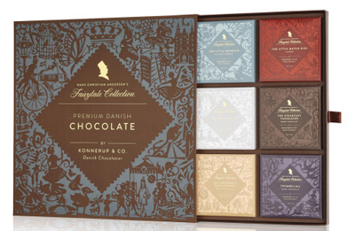 ? ? ? ?安徒生童話系列巧克力,美食與藝術的代表作,九種口味,一大盒里面有9小盒,每一盒均以膾炙人口的童話故事命名。