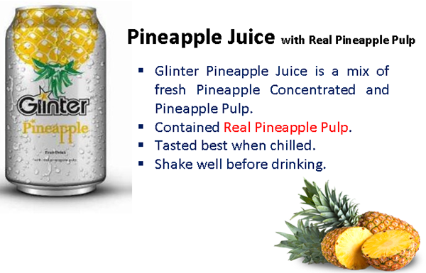 ?????? 純正新鮮菠蘿制作而成,內含菠蘿果肉,口感鮮甜清爽。喝前最好搖一搖。