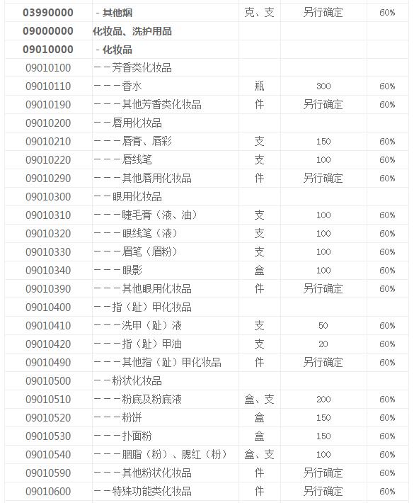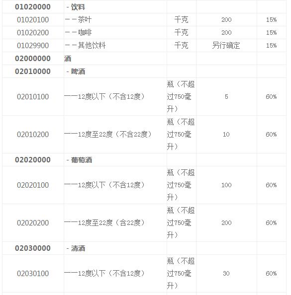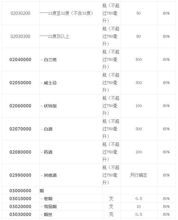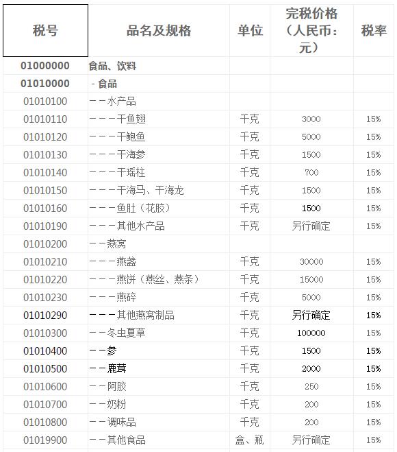 中華人民共和國進(jìn)境物品完稅價格表(限食品、酒和日用品)