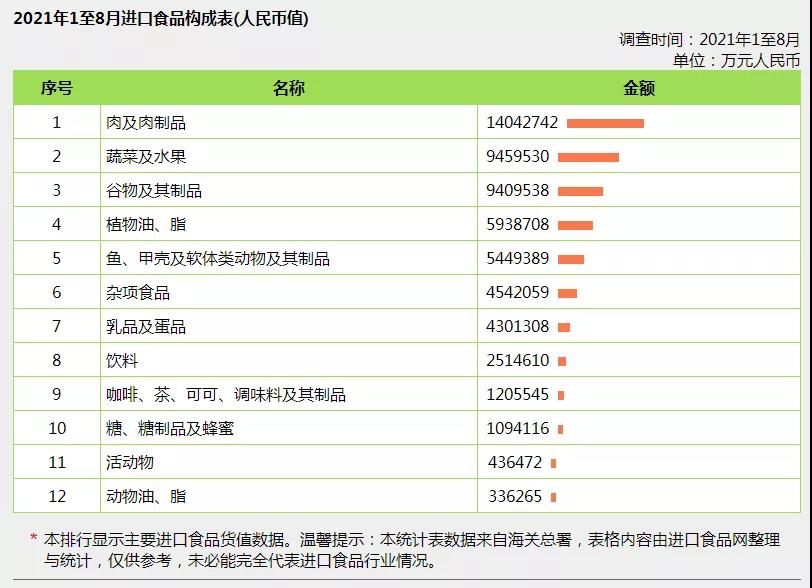 進(jìn)口食品構(gòu)成表(人民幣值)