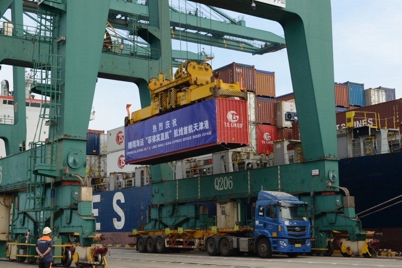 “新開通的直航航線,運輸的商品涵蓋鋼材、家具、化工品等,較之前的轉船運輸路線縮短了5-6天的航程,為進出口企業提供了更強的時效性保證?!必撠熢谔旖蚩诎洞碓摵骄€運營的天津外代國際貨運有限公司工作人員于躍介紹。