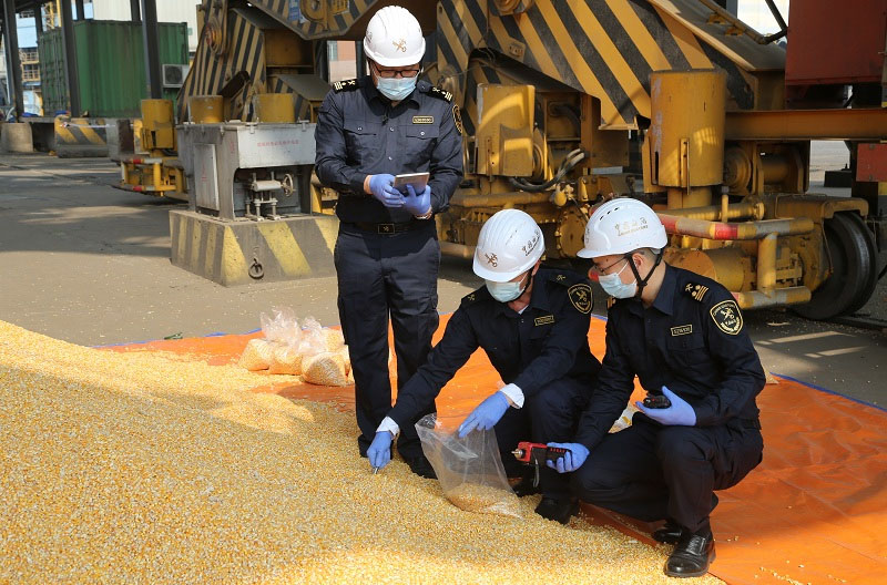 近日,一艘名為“艾奧尼克”號的巴西籍貨輪滿載著4.4萬噸玉米,緩緩停靠在廣州港集團新港作業區,黃埔海關所屬黃埔新港海關關員隨即對該批巴西進口玉米進行查驗。
