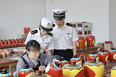 圖為:紹興海關關員在“女兒紅”酒廠開展調研 楊燕華/攝