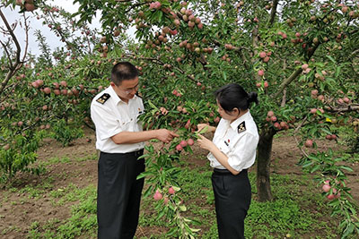 圖為:關關員在出口水果果園開展監管 魏珊珊/攝